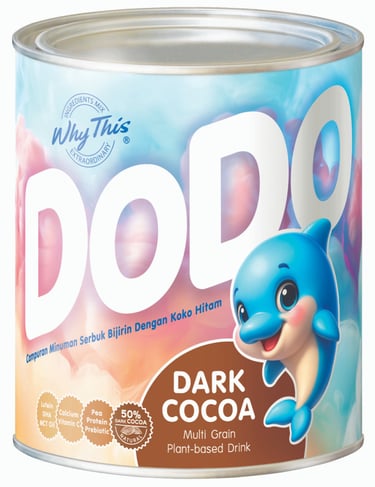 DODO is a modern functional cocoa drink crafted from premium dark cocoa and a balanced blend of whole multi-grains, enriched with plant protein, prebiotics, healthy fats, and essential micronutrients.